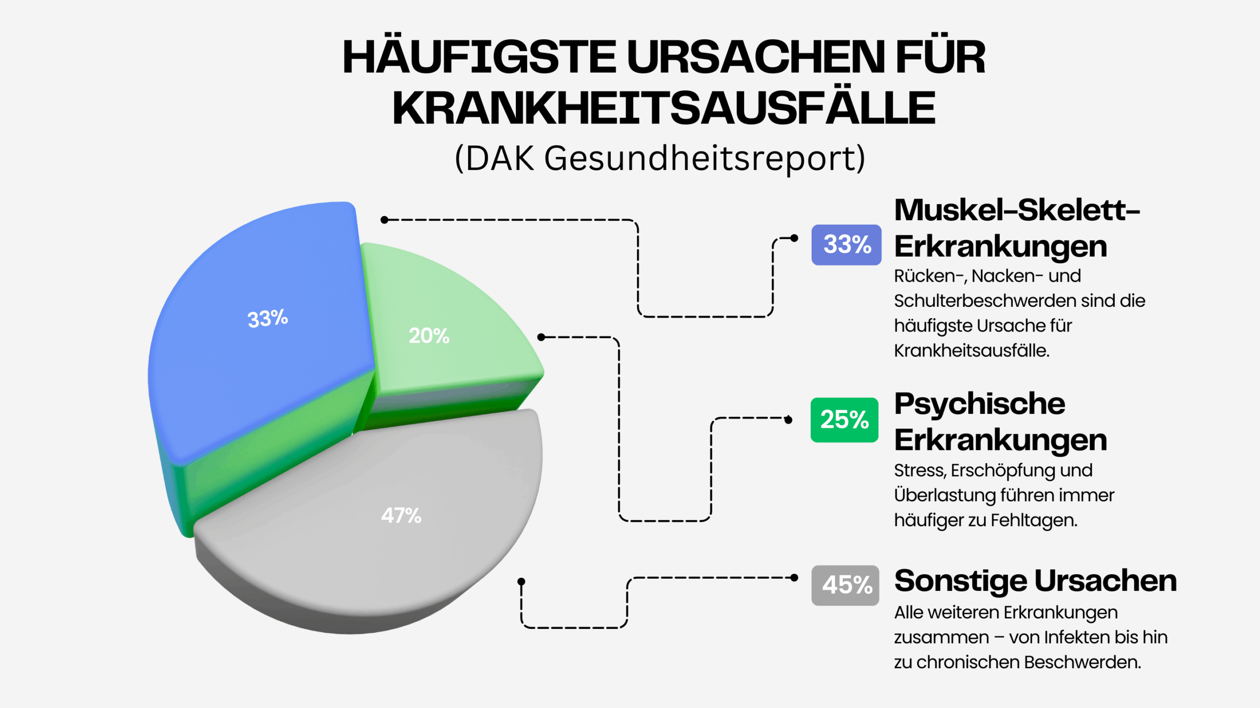 - Fehltage durch psychische Erkrankungen: Laut dem DAK-Gesundheitsreport 2023 gab es einen Anstieg von 14,3 % bei Fehltagen aufgrund von Depressionen und Anpassungsstörungen im Vergleich zum Vorjahr. (dak.de)